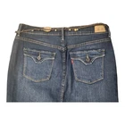 Craft your chic, versatile look with the Levi's 512 Original Jean Perfectly Slimming Dark Wash Denim Skirt. Tailored for a women's size 10, this mini skirt blends timeless style with modern comfort. Its dark wash denim provides a classic blue hue that pairs effortlessly with any top, while the perfectly slimming fit offers a flattering silhouette. The skirt features a convenient zip closure, accented with a signature Levi's logo, buttons, and a zipper for a touch of brand authenticity. Designed with a cotton blend fabric and practical pockets, this piece is as functional as it is fashionable. It's machine washable for easy care, making it a durable addition to your wardrobe for seasons to come.