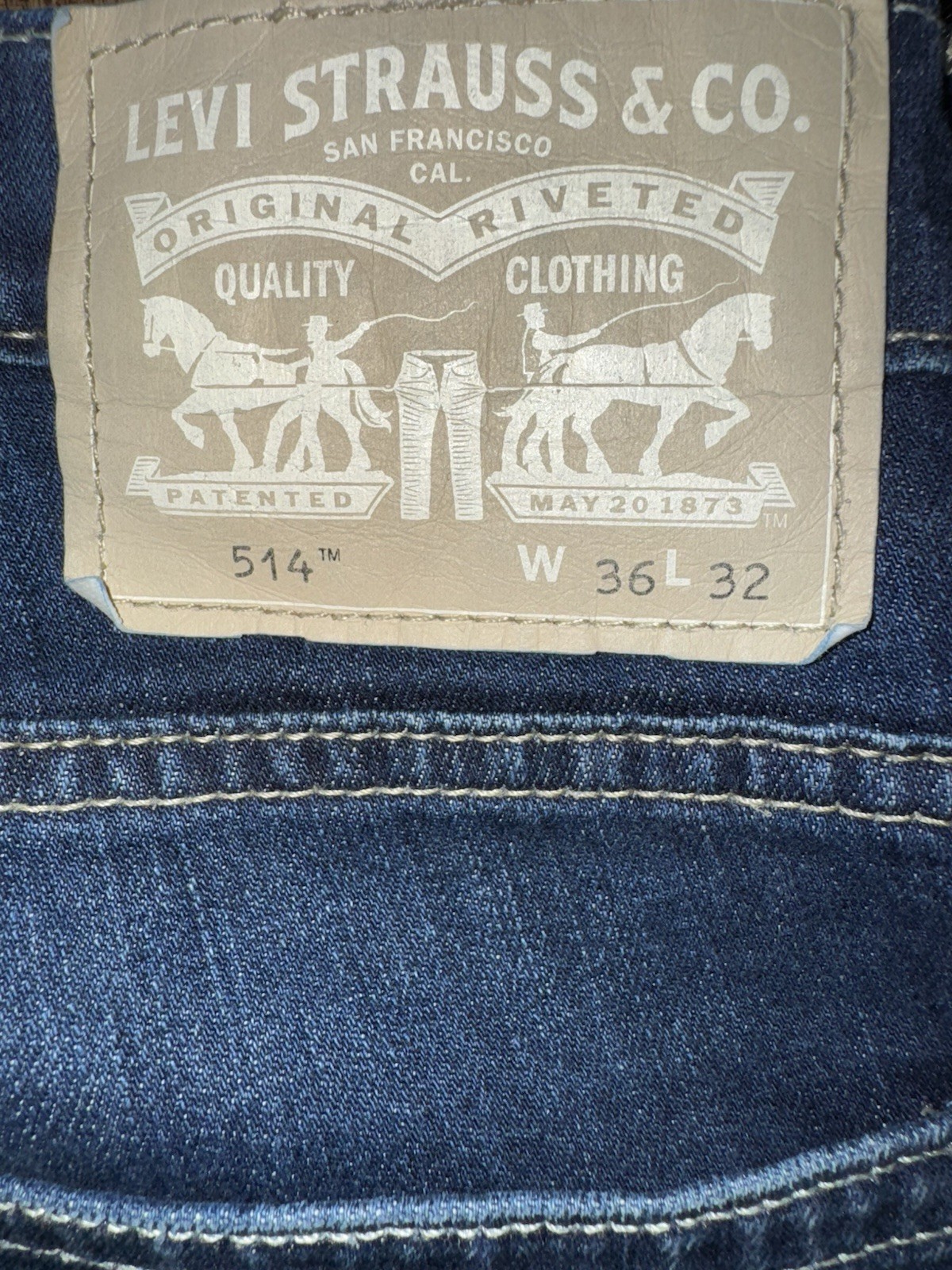 The Levi's 514 Men's Straight Stretch Jeans in size 36x32 are perfect for various occasions such as casual, formal, workwear, and business attire. These jeans feature a classic button closure, 5-pocket design, and a straight leg style. Made from a comfortable cotton blend material with added stretch, these jeans are durable and easy to care for with machine washable instructions. The solid blue color, embroidered logo accents, and flat front design make them a versatile and timeless addition to any man's wardrobe.