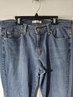 Elevate your wardrobe with these stylish Levi's 515 boot cut jeans in medium wash. Perfect for any season, these jeans feature a solid pattern and a 5-pocket design for ample storage space. The zip closure and belt loops make them easy to wear and the mid-rise fit ensures a comfortable and flattering look. Crafted from high-quality denim fabric, these jeans are machine washable for easy care. With a waist size of 34 inches and an inseam of 28 inches, they are a great fit for women's size 12. These Levi's 515 boot cut jeans are a must-have for any fashion-forward woman looking to add a versatile and stylish pair of jeans to her collection.