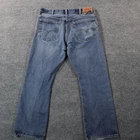 Levis 517 Jeans Mens 38x32 Blue Boot Cut Distressed Denim Western Whisker 11800 Measures 37x32 with 12.5 inch rise. Natural distressing, some faint marks on legs. See photos