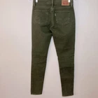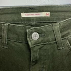 Levis 535 Super skinny jeans in army green with raw hem and ripped knees. Stretchy, mid rise. Ankle cropped length. Size 26. Excellent condition. Boho bohemian streetwear casual. Waist 26 Length 28 inches Cotton and elastic, has some stretch