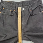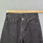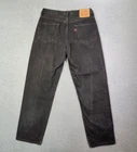 The Levi's 550 Men's Jeans in size 34x32 are made of black cotton denim with a relaxed fit and straight leg style. These mid-rise jeans feature a zip closure and are part of the Levi's 500 Series, perfect for a grunge or skate-inspired look. The brand Levi's is known for its quality and timeless designs, making these jeans a versatile and stylish addition to any wardrobe.