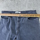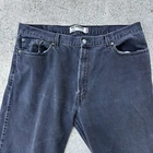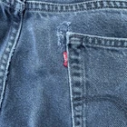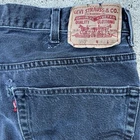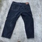 Levi's 550 Jeans for men in black, size 40x30, featuring a relaxed straight fit. Made of medium wash denim with a high rise and a zipper/button closure. The fabric is cotton denim, and the brand is Levi's. The style is part of the Levi's 500 Series, specifically model Levi's 550, and the country of manufacture is Lesotho. These pants have 3 patches for repairs. Nice fade and super comfortable and broken in.