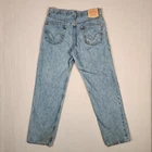 Levis 550 Jeans Mens 34x32 Blue Relaxed Fit Loose Baggy Denim Workwear Y2K Each item is carefully inspected, cleaned, measured, and stored in a smoke free, climate-controlled environment. This is a used item. Measurements may differ from new conditions measurements. Please refer to photos for actual measurements and compare to a similar item of your own. Stained on the knees and on the back hem. One of the belt loops has been repaired. We do our best to describe and measure each item accurately at the time of listing. We do offer free returns in case there are any issues or concerns with your purchase. Items ship either the same or the next business day after purchase. Please feel free to contact us if you have any questions or concerns.