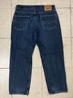 Up for sale is a pair of Levi's 550 Men’s Straight Leg Denim Jeans in a dark wash. These jeans have a zip and button closure and are size 36 with a 29 inch inseam. The fabric type is denim and the brand is Levi's. These jeans are in great condition and are perfect for any casual occasion.