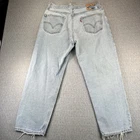 Great vintage looking condition with a hole in the crotch distressed faded worn in please examine all photos for flaws measurements and exact fit. No hassle returns and all items are shipped out daily Monday through Friday. Thank you.