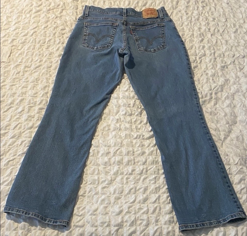 The Levi's 550 Women's Bootcut Jeans in Blue are a stylish and comfortable choice for any season. Made from cotton denim with a medium wash, these relaxed fit jeans feature a mid-rise waist and a 5-pocket design. The bootcut style adds a flattering touch, while the solid blue color makes them versatile for any outfit. With a zip closure and machine washable fabric, these jeans offer both style and convenience for the modern woman on the go.