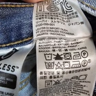 Levis 569 loose straight leg jeans 36x30. There's a spot on the front of one leg with a corresponding lighter spot on the back. Appears to be ink or oil. No other flaws or defects were found. 134 Waist=18.5 Inseam=29 Cuff=10 Free returns in original condition. 1 day shipping excluding Sunday and holidays.