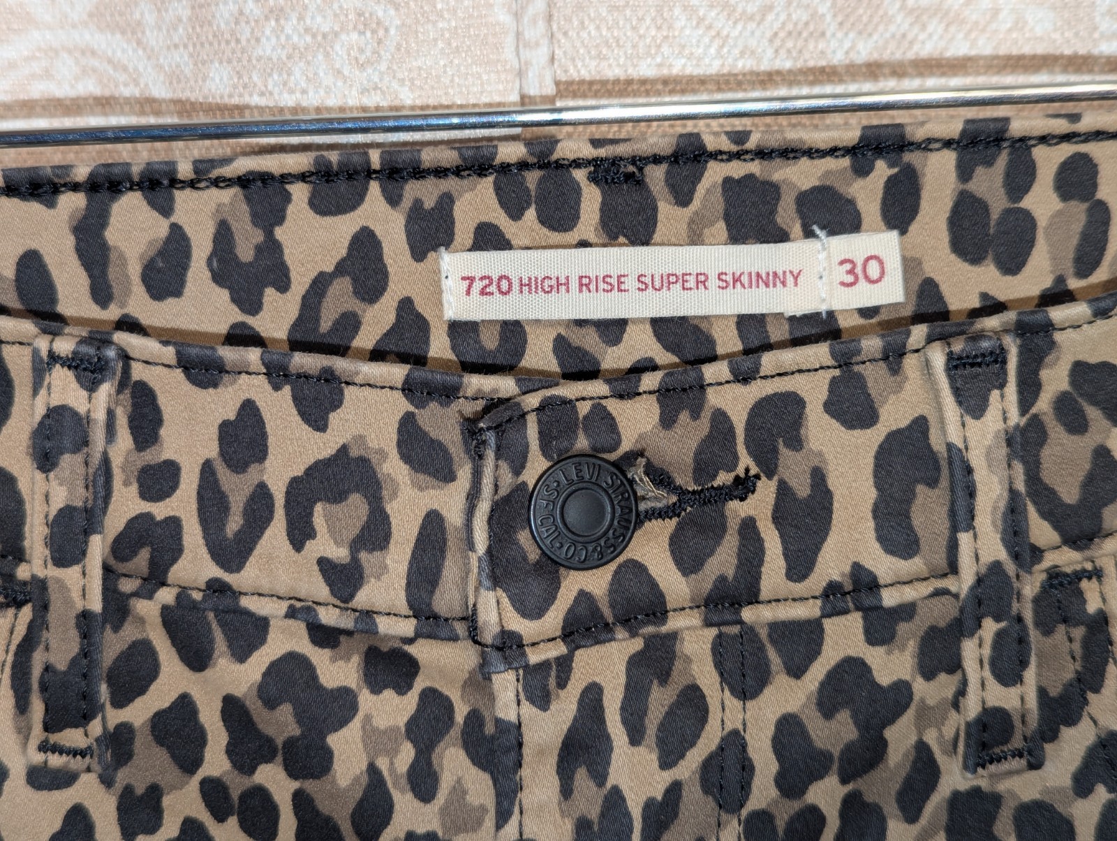 The Levi’s 720 High Rise Super Skinny Leopard Print Women's Jeans in size 29x30 are a stylish and trendy choice for the modern woman. Made from a cotton blend denim fabric with a high rise and super skinny fit, these jeans feature a zip closure and a 5-pocket design. The leopard print brown color adds a touch of animal print flair, making them perfect for the winter, fall, and spring seasons. Machine washable for easy care, these Levi's jeans from the 700 series also offer stretch for comfort and flexibility. Step out in style with these fashionable and versatile pants.