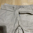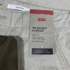 The product is a pair of Levi's 94 Baggy Cargo Pants in women's size 26x31, featuring a wide-leg, loose fit. The khaki color and solid pattern make them versatile for casual occasions. Made of cotton with a mid-rise, these pants have a zip and button closure, along with cargo pockets and a drawstring ankle for added style and functionality. The relaxed fit and relaxed style give them a grunge-inspired look, perfect for the modern fashion-forward woman.
