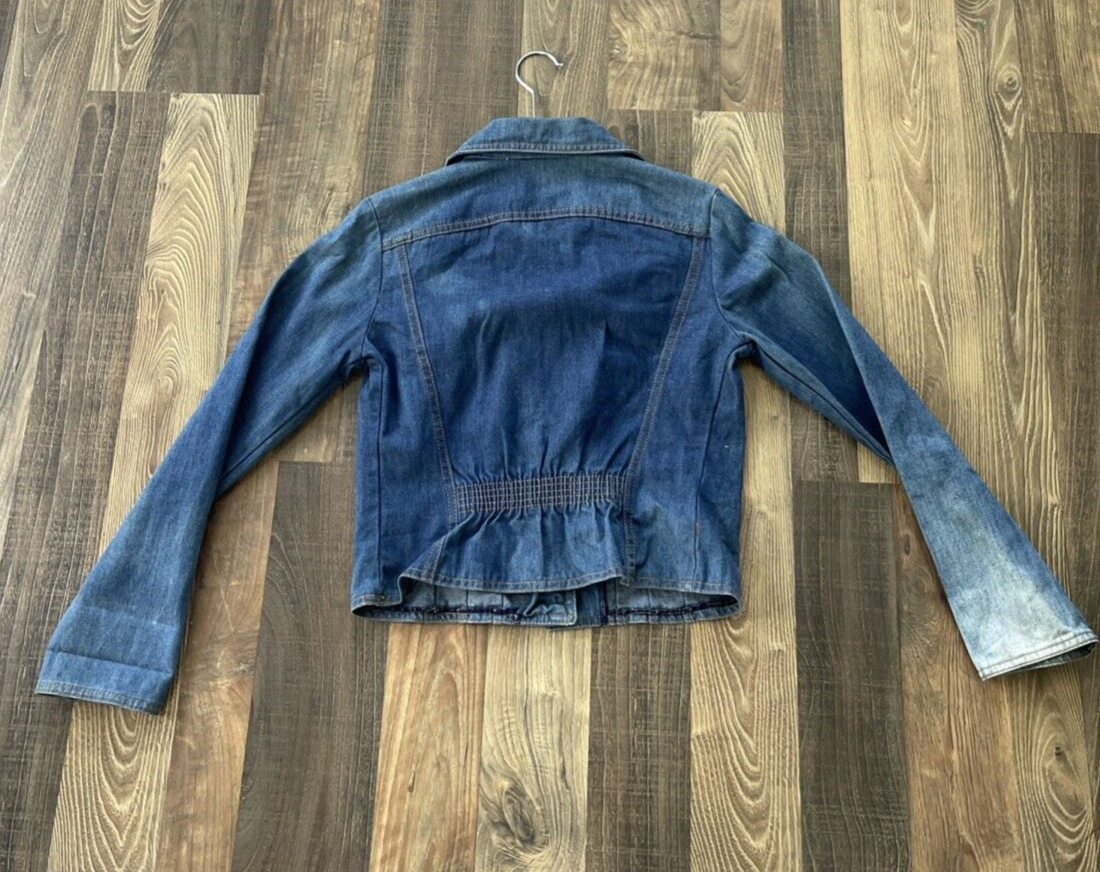 tab cut off Check measurements for fit Lightweight denim jacket with gathered back