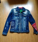 This is not a Levi's brand but thought it would get more exposure under the brand. Get ready to rock the this Bandana Trucker Jacket, perfect for any fashion-forward man! This jacket boasts a colorful multicolor design and is made from a comfortable cotton blend material. The jacket is sized as a Small and is designed to fit regular size types. The Levi's Trucker Jacket is a must-have for any man's wardrobe, with its stylish trucker style and brand name Levi's. This jacket is perfect for any occasion and can be dressed up or down depending on the event. Don't miss out on this amazing jacket that is sure to turn heads!
