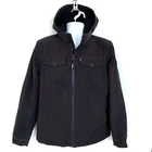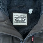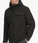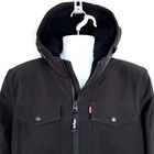 Levi's Black Sherpa Soft Shell Hooded Jacket Size: Mens Medium Measurements: 18" Across Shoulders, 21" Across Chest, 26" Sleeves, 28" Torso Length Material: Shell Face 93% Polyester 7% Spandex Lining: Polyester Condition: Pre-owned FAST SHIPPING!