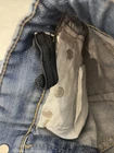 Picture #2- There is a slight dark line on one of the legs on the back which is common in denim sometimes. This pair of Levi's 514 jeans is perfect for your little boy's casual wear. Made of 75% cotton fabric, these jeans are machine washable and feature a medium wash that adds a classic touch to the overall look. The jeans come in a solid blue color and have a straight leg style that fits through the thigh. In addition to being stylish, these jeans are also practical. They have adjustable waists, pockets, and are designed for various activities such as play, walking, fishing, and hiking. The jeans are also stretchable, dry, and have a repreve feature that ensures they last long. Get this pair of Levi's jeans for your little boy today and let them be comfortable and fashionable at the same time.