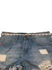 Stay cool and stylish in these Levis Boyfriend 513 Light-wash Distressed Shorts. With a rolled hem and strategically placed destruction, these shorts provide a trendy, relaxed look. Designed with a flattering boyfriend style, they are very loose fitting around the waist area and run a little bigger for the size and are nice and stretchy. The pink embellished details on front pockets give these shorts a unique touch. Perfect for any casual outing, these shorts are a must-have for your summer wardrobe. Worn and washed once. Final sale. Made in 2010.