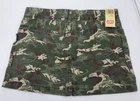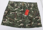 Levi's Camo Tab Twills Denim Skirt Junior's Size 7 Brand New Cute. It has front pockets with ties, with an all over camo print and it's made of 55% ramie and 45% cotton. Please check measurements to ensure fit. The waist measurement is 31 inches and the length from the top to the bottom in the front is 13 inches. The tag on the back is disconnected at the top, but still attached at the bottom see the picture.