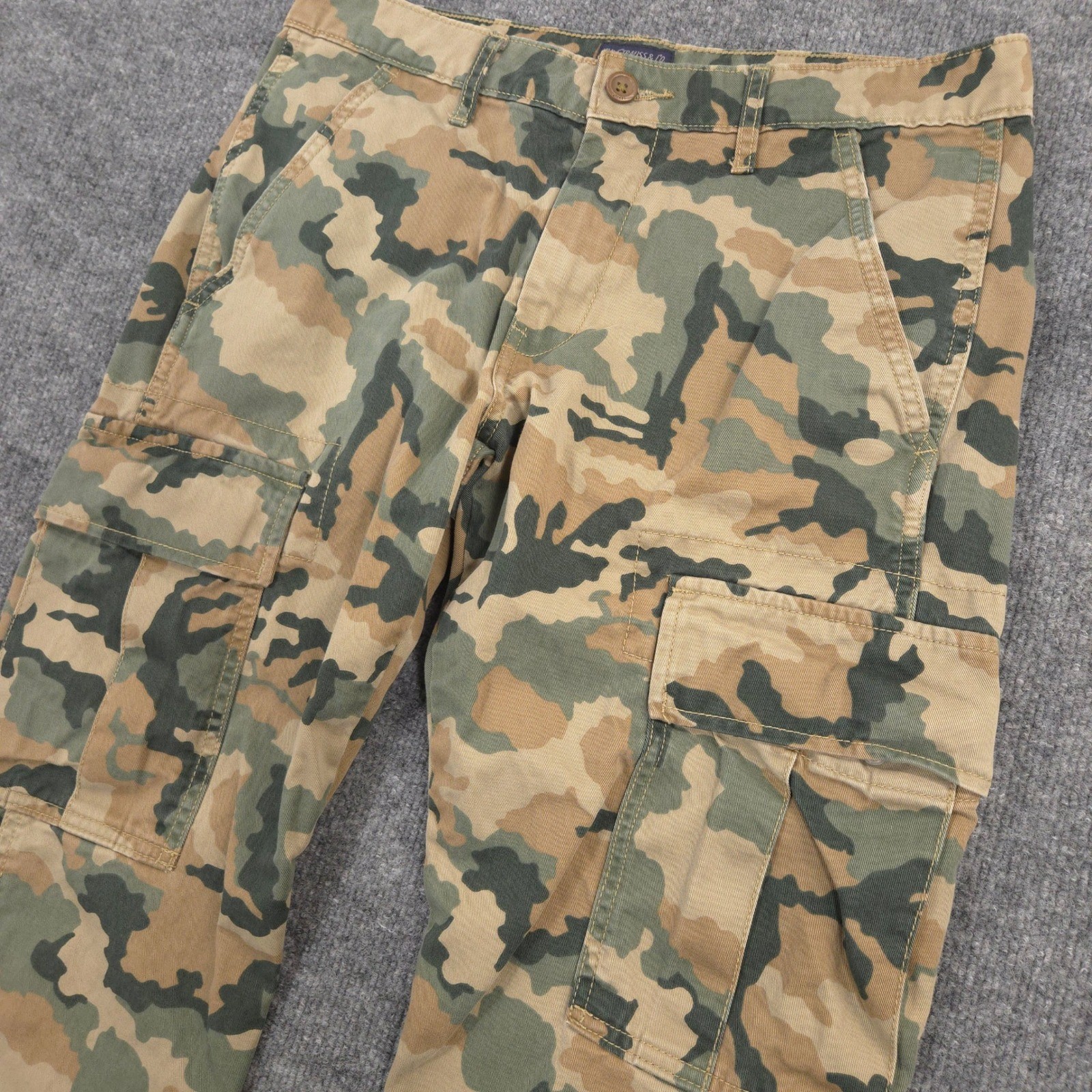 Levis Cargo Pants Mens *31X28* Green Brown Camo Straight Outdoor Military Field *Tagged as 30X30 but actually measures 31X28. Please see photos for measurements. Excellent Condition: No stains, tears, or holes. Sold as pictured. Thanks for looking! -Measurements are approximate, please measure and check your favorite items at home to estimate fit -100% authenticity guaranteed -Items typically ship next business day