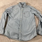 This Levi's Chambray shirt is a versatile piece perfect for any occasion. With a collared neckline and button-down closure, it features a regular fit and long sleeves. The shirt is made of chambray fabric, which is machine washable and perfect for all seasons. It comes in a beautiful blue color with a solid pattern and button accents. The shirt has a standard cut and features pockets for convenience. It is suitable for travel, casual outings, and workwear. The Levi's brand is known for its quality and durability, making this shirt a great addition to any wardrobe. Get this Levi's Chambray shirt today and experience its timeless style and comfort.