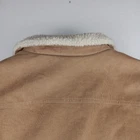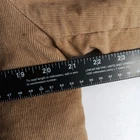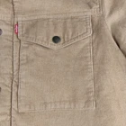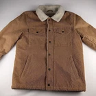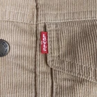 Levi's Corduroy Tan Trucker Jacket in size Small features a faux fur lining for added warmth. This pre-owned jacket is designed in a classic trucker style, suitable for both men and women. Made from durable corduroy fabric with polyester insulation, it offers a comfortable fit for everyday wear.