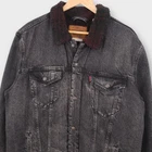 This Levi's Fresh Leaves Justin Timberlake jacket is a must-have for any fashion-forward man. With its black denim material, snap closures, and accented with buttons, this jacket is perfect for travel, casual wear, and workwear. The mid-length jacket is lined with sherpa and insulated to keep you warm during fall, winter, and spring. The Levi's Trucker jacket features spread collar style and is packable with pockets for your accessories. The jacket is a regular fit and has a chest size of 51 inches. It is machine washable with cotton as the outer shell material and synthetic insulation material. The jacket is designed to be worn by men and has a Y2K, Streetwear, Rock, Music, Cowboy, Classic, Denim, and Trucker theme. The jacket can be used for walking, hunting, and hiking, making it a versatile piece to add to your wardrobe. Tag Size: Men’s XXL Best Fit: * Men: XXL Approximate Flat Measurements: * Chest: 25.5” * Length: 29” * Material: Denim Condition: No Noticeable Flaws All items are second hand, many being vintage and may have small imperfections. Anything major is noted.
