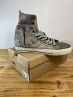 on top of the left shoe there is a small mark. Possibly a glue mark when they were fitting the soul.?? Elevate your sneaker game with these Levi’s High Top Sneakers. These stylish shoes feature a solid pattern and a round toe shape that is perfect for any casual or activewear occasion. The zip closure and double layer fold-down design add a touch of punk and rock style to your outfit, making them perfect for those who want to make a statement. The sneakers are made with a durable canvas upper and lining material, making them breathable and cushioned for all-day wear. The rubber outsole provides comfort and support, while the standard shoe width and adjustable features make them suitable for any foot size. With a retro and grunge music-inspired theme, these sneakers are perfect for those who want to add a touch of the 80s and 90s to their wardrobe.
