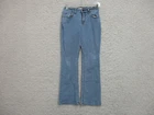 Levis Jeans 4 Womens Regular Size Blue Denim Boot Cut Elastic Waist Stretch Logo