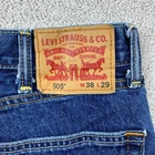 Authentic Levi's 505 straight leg jeans in classic denim blue. These iconic jeans feature the original riveted design, offering durability and timeless style. The straight leg cut provides a comfortable fit suitable for various body types. Perfect for casual everyday wear, these versatile jeans can be dressed up or down for different occasions. The rich blue color pairs well with a wide range of tops and shoes, making them a wardrobe staple. Ideal for work, weekend outings, or casual social events. Be sure to check out our other listings! tons of new items added every single day!