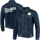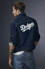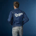 Limited-edition gear for true fans of the game. Our officially licensed Levi's® Major League Baseball Collection celebrates your team spirit with iconic Levi's® styles. The Levi's® MLB Denim Trucker Jacket is a seasonal take on our classic Trucker, a standard that has been loved and lived in for decades. It's embellished with details that will stand out at the stadium - or anywhere else. Display your team pride with a logo chest patch and distinctive back embroidery, done in vintage-style chain stitching that's heavily textured. Even the inside label is cut from white leather with red detail for the look of a baseball. Get it before it's gone! Show your support for the LA Dodgers with this limited edition Levi's denim trucker jacket. Made from high-quality cotton and featuring a button closure, this jacket is perfect for any Dodgers fan. The blue color and denim fabric type make it a stylish addition to any wardrobe. This Levi's trucker jacket is designed with a regular fit and is available in size small. It is a perfect choice for men who want to show off their love for the LA Dodgers in a stylish and comfortable way. With its limited edition features, this jacket is a must-have for any Dodgers fan.