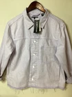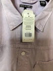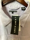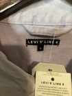 The Levi's Line 8 Denim Jacket in size L features a classic design with a Western-inspired theme. Made of cotton denim with a button and snap closure, this lightweight jacket is suitable for casual, workwear, and travel occasions. The long sleeve jacket has a collared neckline, pockets, and a solid blue color. It is brand new with tags, highlighting Levi's signature accents and logo, perfect for a stylish and timeless addition to your wardrobe.
