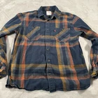 Elevate your casual style with this Levi's men's button-up shirt in a size Large. The brown and blue plaid pattern and button-down collar add a touch of classic charm to your wardrobe. Made from soft and breathable cotton flannel fabric, this shirt is perfect for any season, whether you're dressing up for a casual outing or layering it up for a chilly winter day. With handy features like pockets and button accents, this shirt is both functional and fashionable. Perfect for any occasion, this Levi's shirt is a must-have for any stylish man's collection.