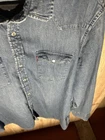 This Levi's men's denim shirt is a classic addition to any wardrobe. With its solid blue color and Western theme, it's perfect for any occasion. The shirt features pearl snap closures and long sleeves, making it a versatile piece for any season. Made with high-quality denim fabric, this shirt is built to last. It's available in a 2XL size, making it a comfortable fit for any man. Whether you're going for a casual or formal look, this Levi's denim shirt is the perfect choice.