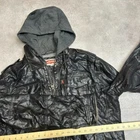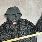Levis Faux Leather Bomber Jacket Mens Large Y2K Hooded Trucker Coat, Black Condition: Used, See Photos for More Details - Moderately Worn Measurements Provided In Photos Instagram: OpenOutfit SKU: 109030