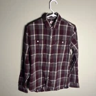 This Levi's men's shirt is a classic fit button-up with a plaid pattern in red, grey, and white. The shirt is made of flannel fabric and has long sleeves with button cuffs. It is a size Small and has a button closure. The shirt is perfect for casual occasions and can be worn as a stylish and comfortable addition to any wardrobe.
