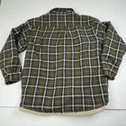 Levis Shirt Jacket Mens Large Green Plaid Sherpa Lined Flannel Two Pocket Warm Condition: Good used condition with light wear, no major flaws or damage noted Shell: 100% cotton exterior Body Lining: 100% polyester sherpa Sleeve lining: 100% polyester with 100% polyester fiberfill Classic green, navy, and white plaid pattern Button front closure with two chest flap pockets Levis "Two Horse" brand label inside collar Warm sherpa (faux shearling) interior lining for extra insulation Made in China Tag size: Large (Mens) Approximate flat measurements: Pit to pit ~23 inches, Back length ~31 inches Great for layering in cold weather, outdoors, or casual wear