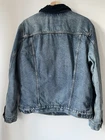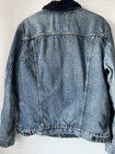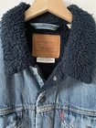 Levis Mens Sherpa Trucker Denim Jacket Blue Denim Navy Sherpa Size Large Very Good Condition 23.5 inches armpit to armpit 26.5 inches shoulder to hem 26 inches arm length