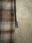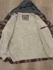 Stay warm and stylish with this Levi's Flannel Hooded Jacket. The mid-length jacket features a spread collar, accented with a button, quilted design, zipper, hood, and logo. The plaid pattern in brown and white is perfect for casual and workwear occasions during the fall, winter, and spring seasons. Crafted with cotton outer shell material and polyester lining and insulation materials, this jacket is perfect for walking and outdoor activities. The regular fit and size type make it a great addition to any man's wardrobe. Get ready to embrace the chilly weather with this Levi's Sherpa Lined jacket.