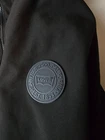 Levis Men's Coat Size M Black Soft shell Sherpa Lined Hooded Water resistant Two chest pockets Two side pockets Bungee cord closurecat bottom hem Snap closures on wrists **Small scratch on front-bottom-shown