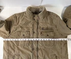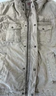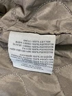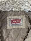 Stay stylish and comfortable with this men's beige XL Levi's jacket. Made from durable cotton twill fabric with a stand-up collar and full zip closure, it is perfect for work, casual, or travel occasions. The bomber jacket style, along with padded features and wind-resistant properties, makes it a versatile option for all seasons. With a classic Levi's logo accent and multiple pockets for convenience, this vintage-inspired jacket is a timeless addition to any wardrobe. Easy to care for with machine washable instructions, this jacket combines practicality with a touch of retro charm. Very good used condition
