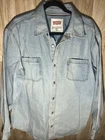 This Levi's men's denim shirt in size XL is a classic addition to any wardrobe. The blue shirt features metal buttons and long sleeves, perfect for any occasion. The shirt is made of high-quality denim fabric that is both durable and comfortable to wear. The solid pattern and regular size type make it a versatile choice for any man's wardrobe. This button-up shirt is perfect for casual events or can be dressed up for a night out. Add this Levi's denim shirt to your collection today!