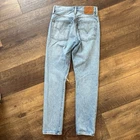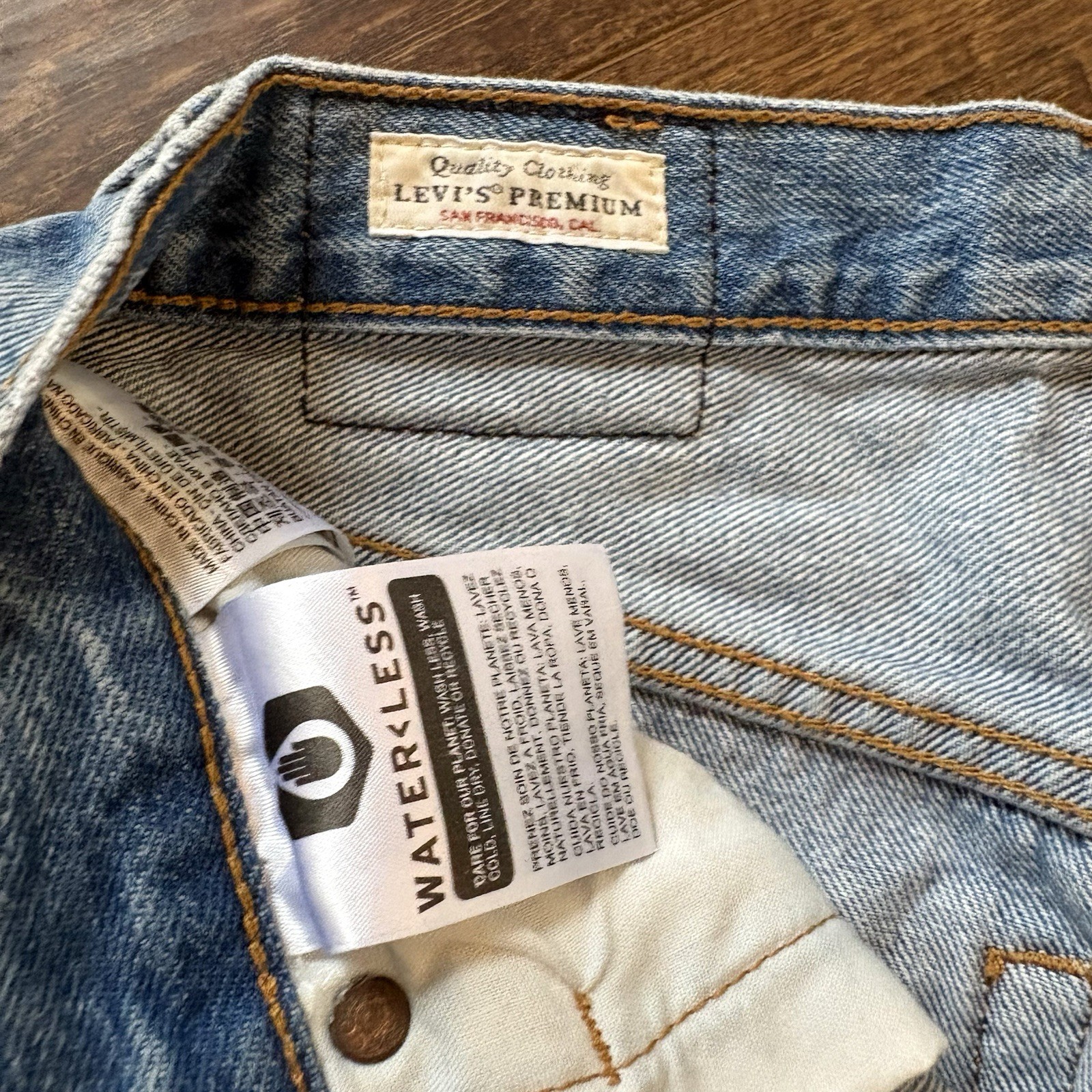 The Levi’s Premium Denim Women’s 501 S Light Wash Distressed Jeans with a Button Fly in size 24x28 are a stylish and versatile addition to any wardrobe. These solid blue jeans feature a high rise and a regular fit, making them comfortable and flattering. With their distressed detailing and accents like a zipper and logo, these jeans add a trendy touch to any outfit. Machine washable and from the Levi's 501 Series, these jeans are perfect for all seasons and can be dressed up or down for any occasion.