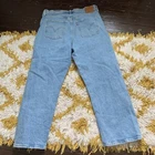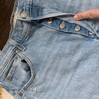 Levis Premium Jeans Womens 32 Ribcage Straight Ankle Blue Medium light Wash Button Fly Distressed These are 99% cotton and don’t have any stretch. Pretty stiff and hold you in. Great condition