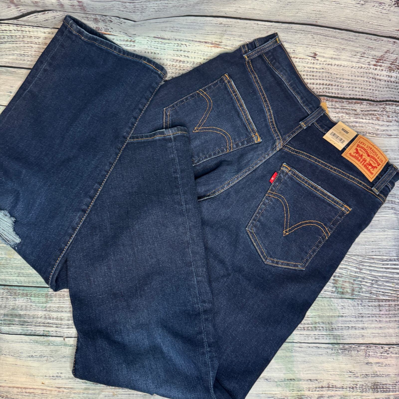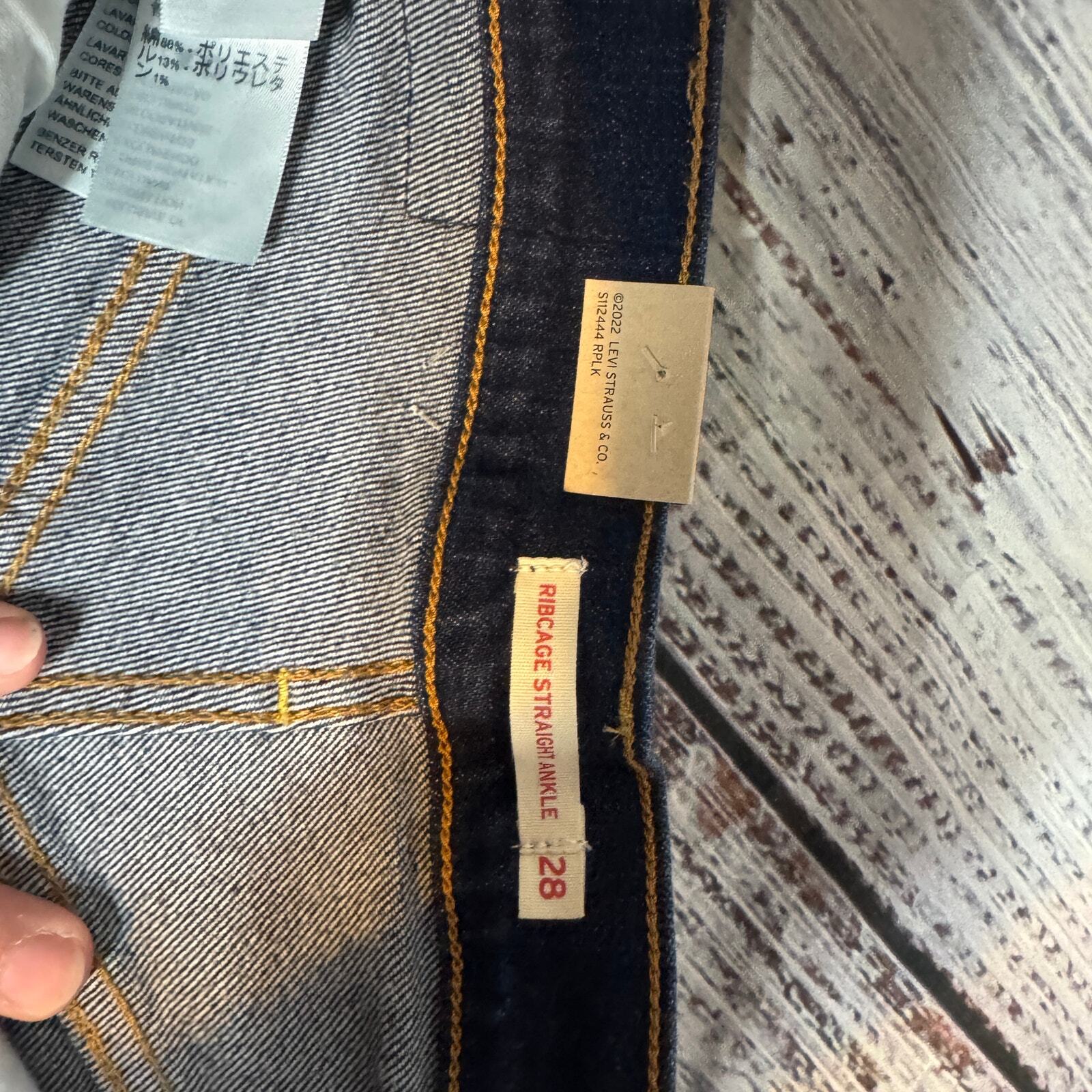 Levi’s Ribcage Straight Ankle Button Fly Distressed Jeans Dark Was 26x27 NWT