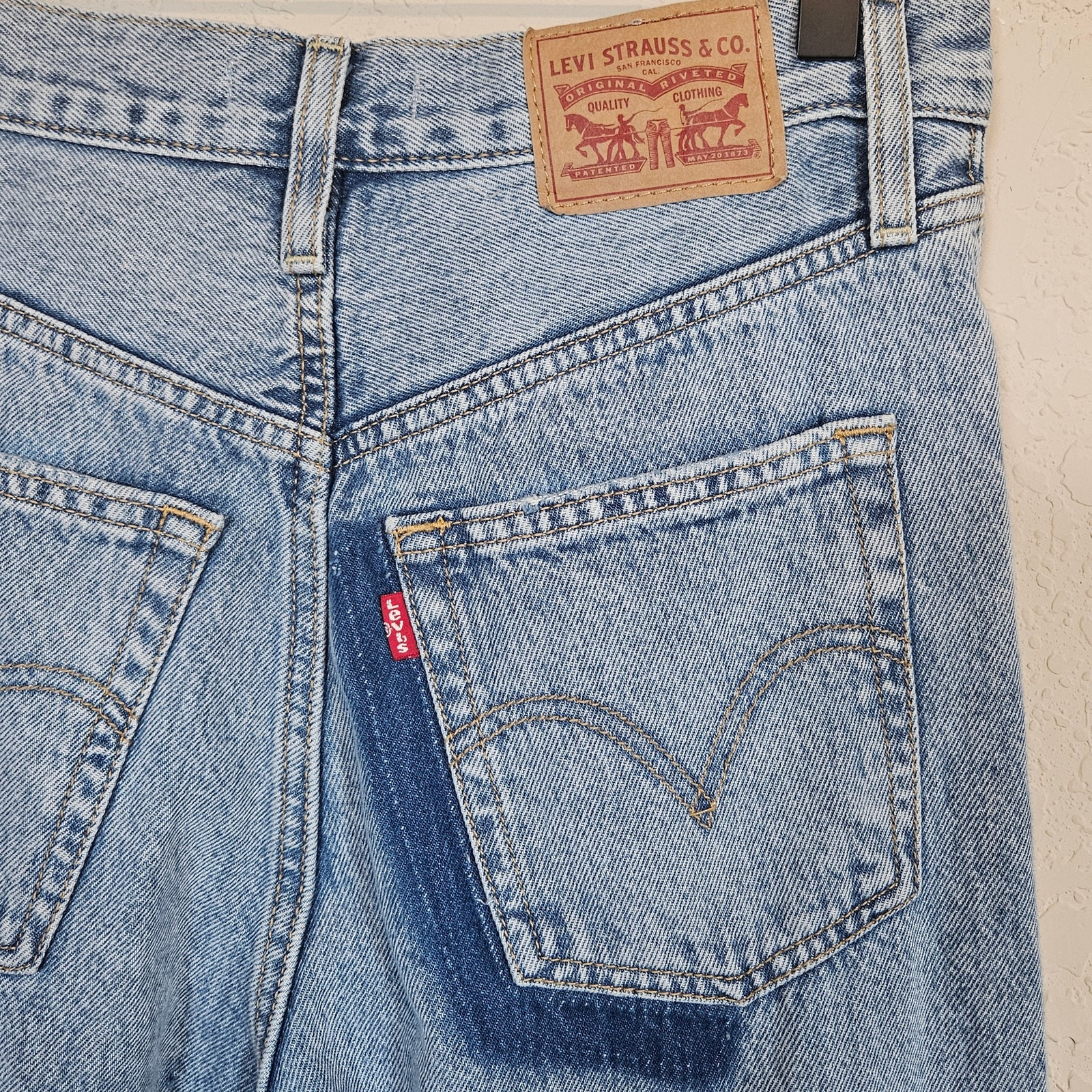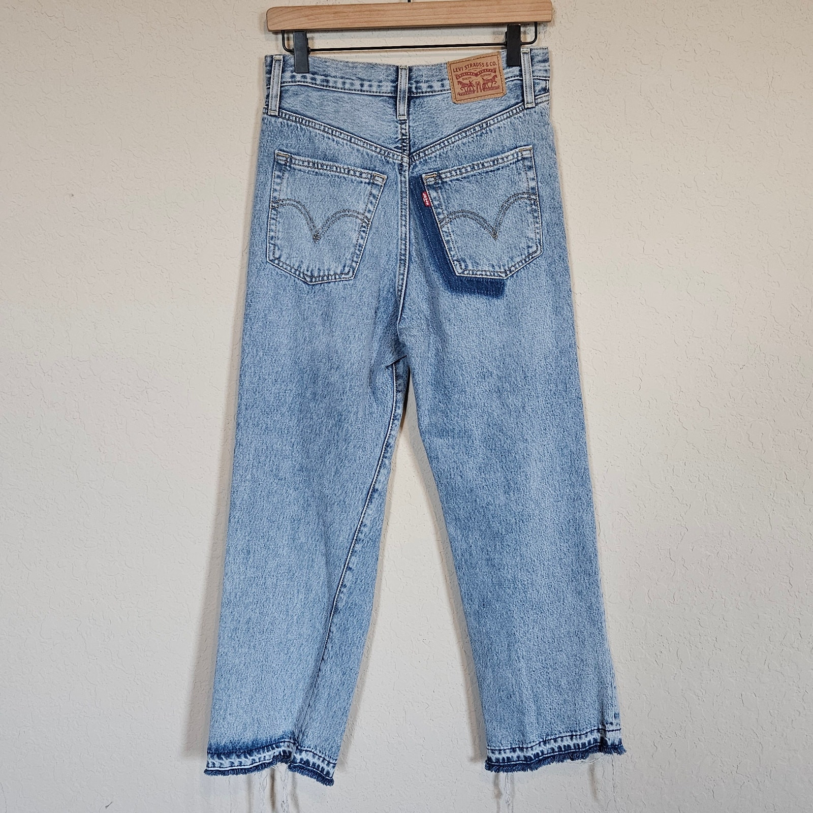 Levi's Ribcage Straight Ankle Jeans Distressed Womens 27 Grunge Hobo Chic Casual Levi's highest high rise yet. The Ribcage Jean—with its soaring 12-inch rise—has become a hip-slimming, waist-defining, leg-lengthening obsession. This fit will show off your figure and make you feel as amazing as you look. Denim Button fly 5-pocket styling A versatile fit with a flattering high-rise Finished with a classic straight leg Hits at the ankle Non-stretch Slim Through The Hip And Thigh Carefully crafted with recycled materials 95% cotton, 5% recycled cotton Color: Light Indigo Destructed - Blue Size 27 Approximate Measurements: waistband - 14" across hips - 16" rise - 12.5" inseam - 25.5" Excellent pre-owned condition, no rips, tears or stains. Smoke free, dog friendly home. grunge maximalism fantasy fashion twee quirky distressed frayed shredded deconstructed Sorority rush Greek life casual everyday hobo chic skater urban edgy alternative