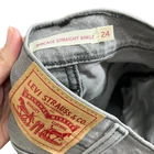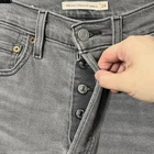 Levi’s Ribcage Straight Ankle Jeans in Cosmic Chatter Gray Women Size 24 Hemmed Cotton Blend, minimal stretch. Pockets, high Rise, Raw Hem. Approximate Measurements taken flat: waist 12.5, rise 11.5, inseam 26 Pre-owned; in excellent condition. This has been hemmed. Please see all photos for condition details.