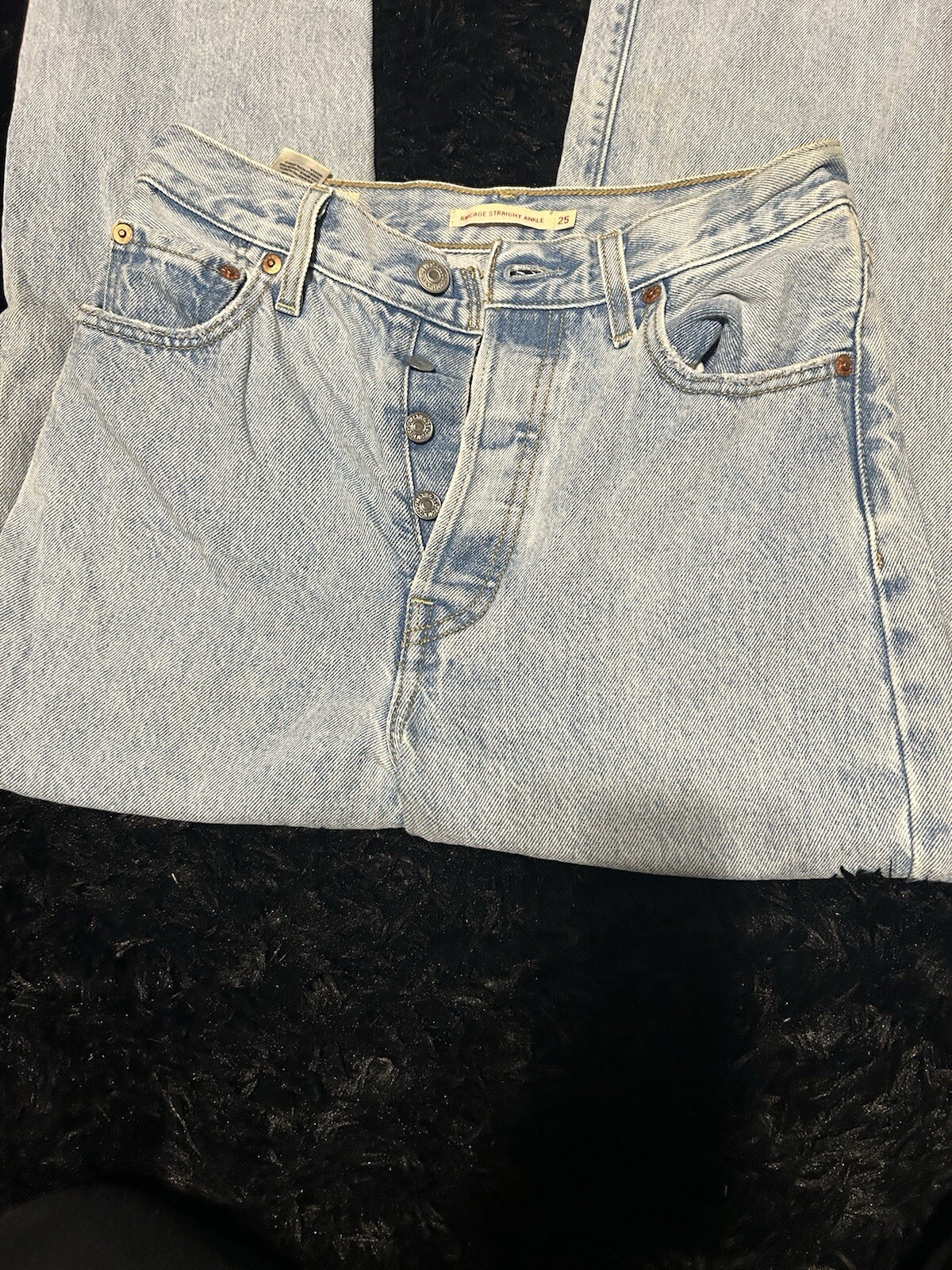 These Levi’s Ribcage Straight Ankle Jeans in women’s size 25 are an absolute must-have! With their ultra-high rise and trendy straight-leg cut, they’re both flattering and stylish. These jeans are light wash with a classic button fly (no zipper!) for that vintage-inspired look. • Brand: Levi’s • Style: Ribcage Straight Ankle • Size: Women’s 25 • Color: Light Wash • Features: • Ultra high-rise • Straight-leg fit • Button fly closure (no zipper) Condition: Pre-loved, but still soooo cute and perfect! They’re a snug fitting 25 with NO STRETCH btw. I’m a women’s 26, and couldn’t fit these. Comes from a smoke-free home. Price: $37.00 (or best offer) – Levi’s Ribcage jeans typically retail for $98+, so this is a great deal for these trendy jeans! Feel free to message me with any questions or offers. Thanks for looking!