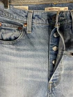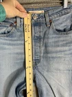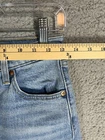Levis Ribcage Straight Blue Light Washed Denim Jeans with Button Fly and Distressing to Knee. Women's Size 26. Great pre-owned condition. Distressing to knee. See photos for details. A pproximate measurements: Waist: 13 inches flat Rise: 12 inches Inseam: 27 inches Please see measurements as all brands can vary in size.