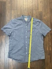 This Levi's shirt is a men's size 2XL in a blue-gray chambray fabric. It features a collared neckline with a button-down style, short sleeves, and a front pocket. The shirt has a classic Western theme with button accents and the Levi's logo. It is suitable for casual occasions and can be worn in all seasons. Easy to care for with machine washable cotton material.