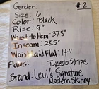 Elevate your denim game with these stylish Levi's Signature jeans in size 6. The black cotton blend fabric wash with a striped pattern and a mid-rise waist of 28 inches is perfect for any season. The straight style with a slim fit and a 5-pocket design is complemented by a zipper closure and accents. These jeans are machine washable and easy to care for, making them a great addition to your wardrobe. Whether you're dressing up for a night out or keeping it casual, these Levi's Signature jeans are perfect for any occasion. Add them to your cart today!