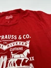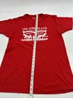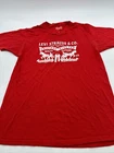 This Levi's T-Shirt is a men's size medium in red with a graphic print featuring the Levi's logo. It has a crew neck and short sleeves, made of cotton for comfort. The shirt has a regular fit and is easy to care for, making it a classic and versatile addition to any wardrobe. Made in Mexico, this Levi's T-Shirt embodies the brand's timeless style and quality craftsmanship. *Check the images above for the flaws and measurements of the items.