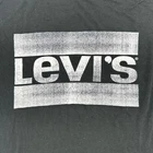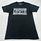 This is a Levi's men's T-shirt in size small, featuring a graphic print logo on the front in black color. It has short sleeves, a crew neck, and is made of polyester and cotton blend. The fit is classic, with easy care features. This T-shirt is designed with a classic theme and includes the Levi's brand logo accent. It is manufactured in Mexico. *Check the images above for the flaws and measurements of the item.